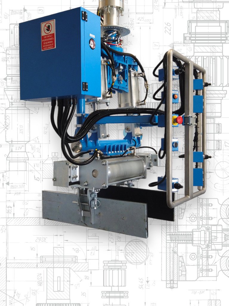 Manipolatore peumatico a braccio rigido articolato con portata massima di 750 kg, adatto alla movimentazione controllata o con azzeratore di gravità di carichi imponenti e gravosi con la massima facilità e precisione, capace grazie agli attrezzi personalizzati di posizionare il carico con la massima precisione.